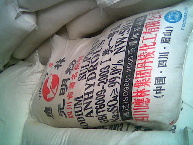硫酸钠,无机化合物,又名无水芒硝,白色、无臭、有苦味的结晶或粉末, 有吸湿性。外形为无色、透明、大的结晶或颗粒性小结晶。主要用于制水玻璃、玻璃、瓷釉、纸浆、致冷混合剂、洗涤剂、干燥剂、染料稀释剂、分析化学试剂、医药品等。 |
